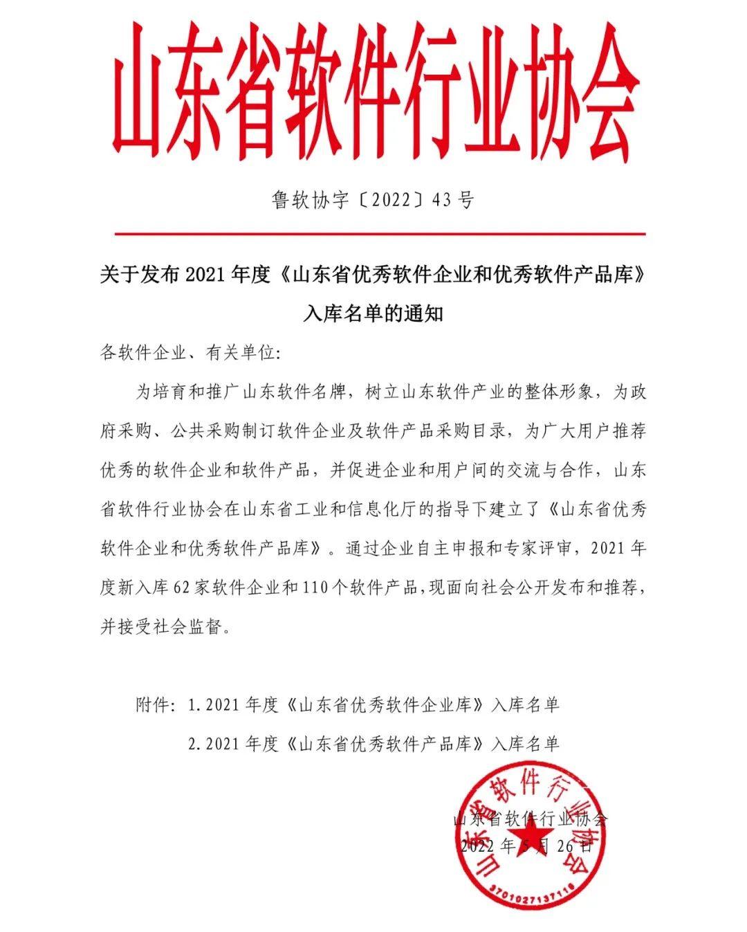 本次入选2021年度《山东省优秀软件企业库》和《山东省优秀软件产品库》是对我司综合实力、技术水平的又一次肯定。未来,中网云安继续聚焦行业应用与技术创新,加大对技术研发的投入力度,加强信息技术创新,继续为用户提供“可靠、易用”的软件产品,助力用户的信息安全。为山东省软件产业高质量发展做出新的贡献。
