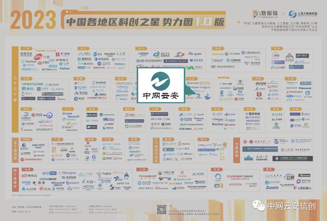 近日,由数据智能产业创新服务领域的垂直、专业深度媒体数据猿推出的《2023中国各地区科创之星势力图1.0版》正式公布。中网云安凭借网络安全领域过硬的技术创新实力、完善的安全服务能力以及在网络安全领域的丰富实践经验,入选“科创之星势力图”,此次充分体现了业界对中网云安在网络安全领域的高度认可,成为山东省科创代表企业。