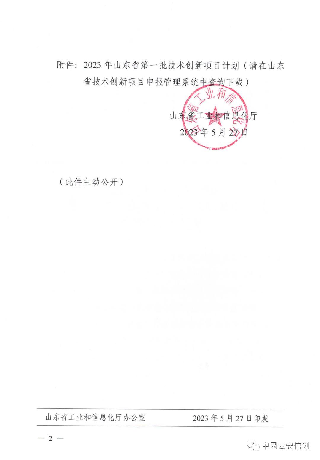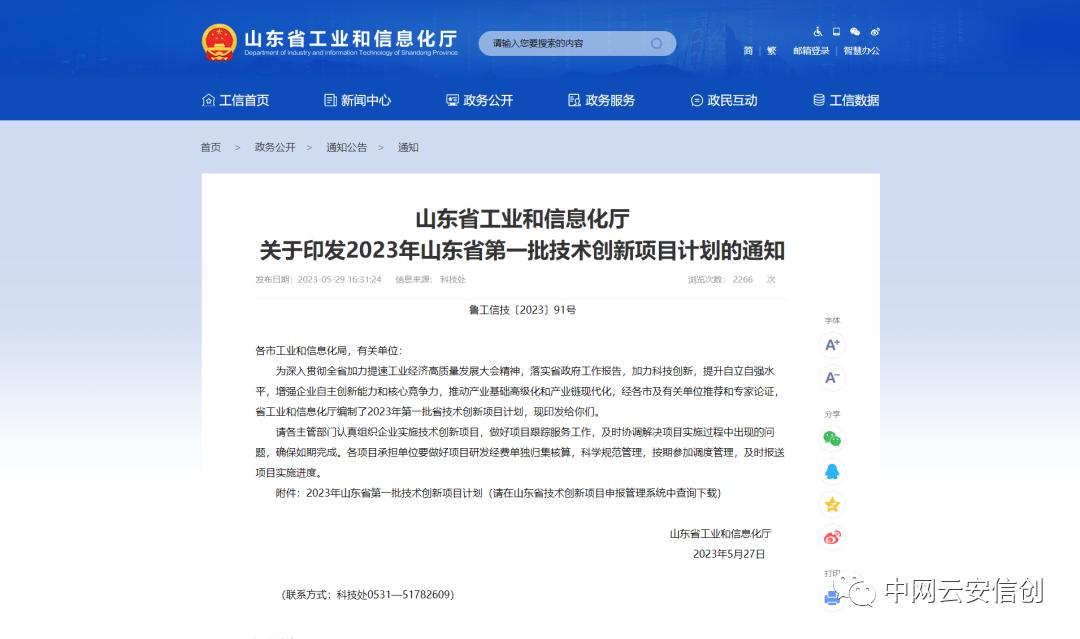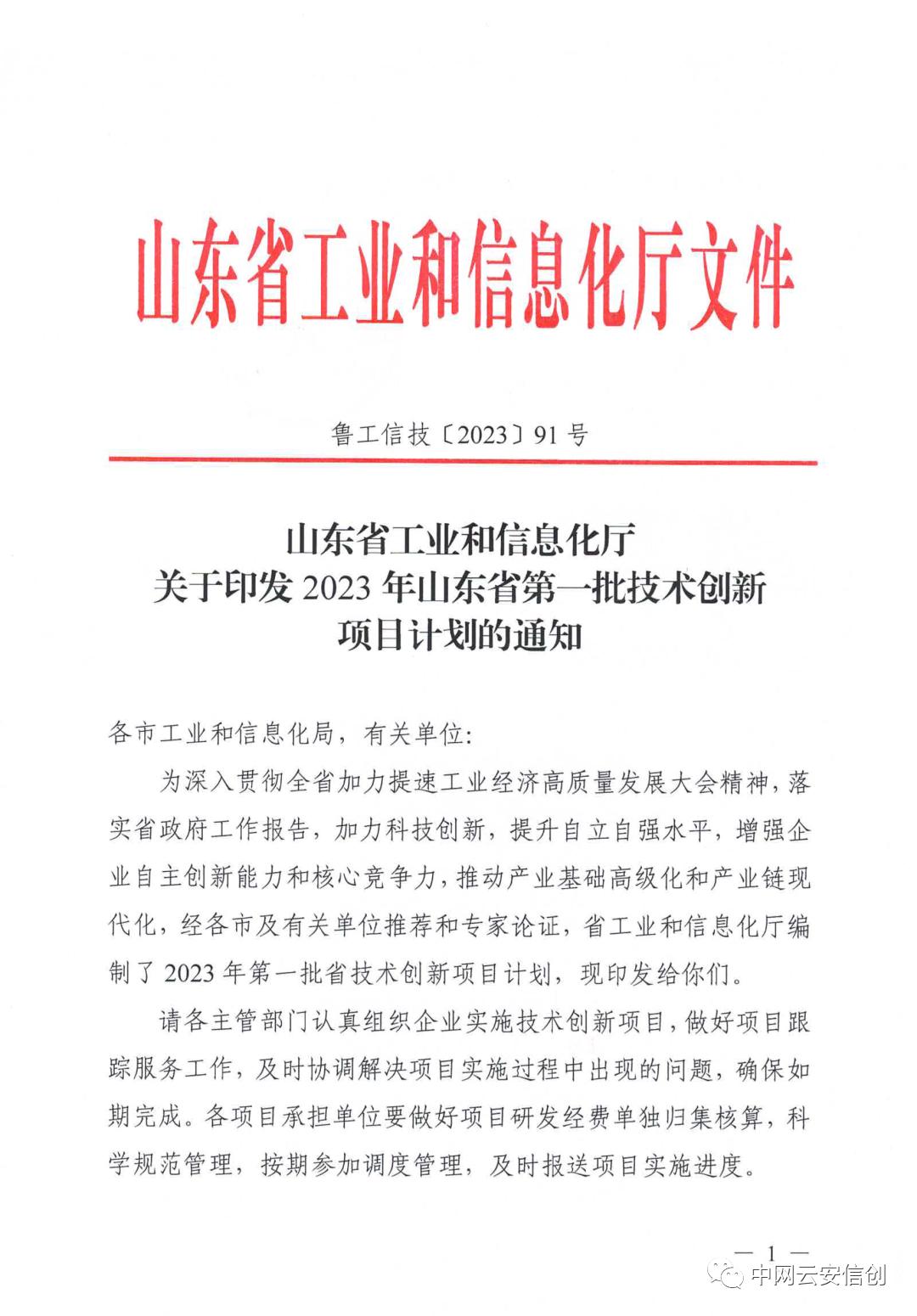 近日,山东省工信和信息化厅下达了《山东省工业和信息化厅关于印发2023年山东省第一批技术创新项目计划的通知》(鲁工信技〔2023〕91号)文件。香港正牌资料(以下简称中网云安)自主研发的“中网云安主动防御及智能预警系统”、“基于信创平台的便携式运维审计系统”两项项目顺利通过专家组审核,获批2023年山东省第一批技术创新项目计划。