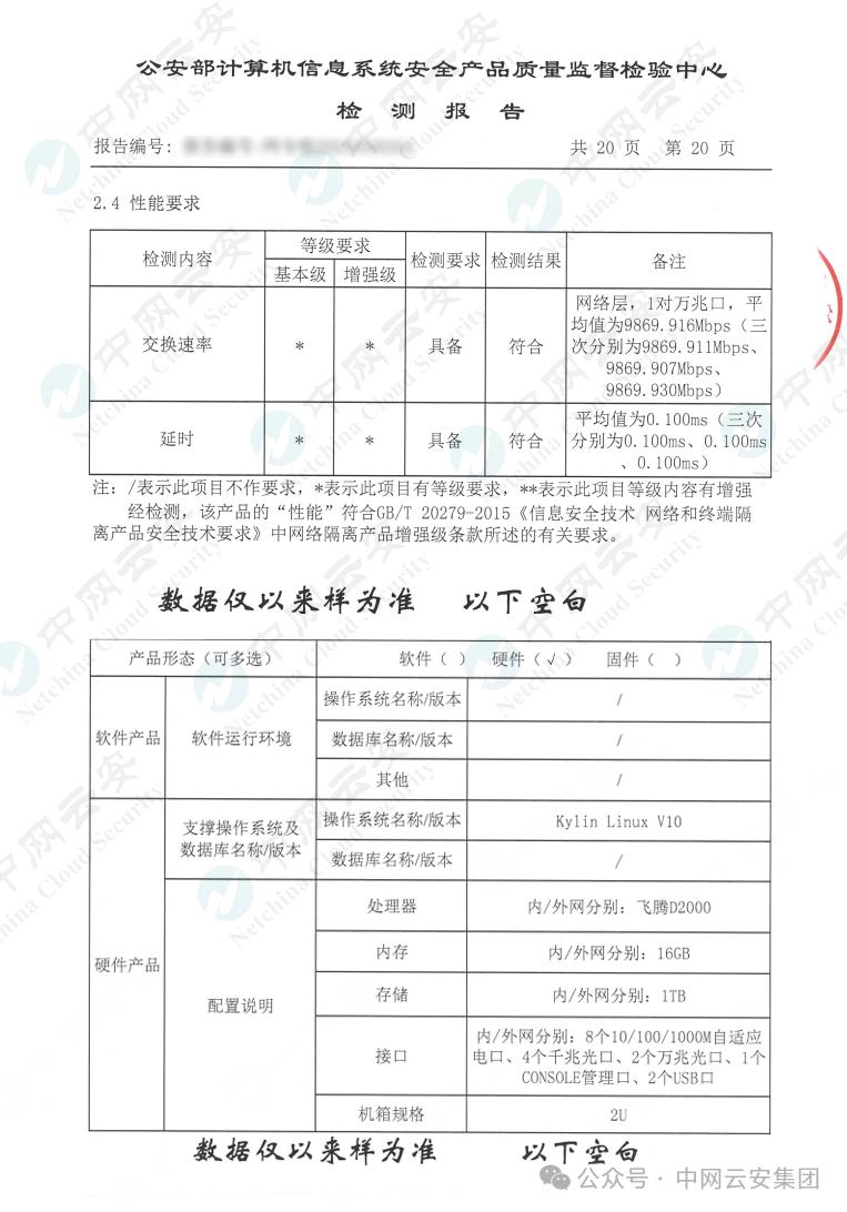 在本次网络安全专用产品安全检测中,中网信创平台网闸不仅通过网络隔离产品(增强级)所有功能测试,在设备的交换速率、平均延时等核心性能方面再创新高,设备交换速率达到9869Mpbs,延时仅为0.1ms,性能大大超出国家标准的要求。基于纯国产化软硬件平台的网闸系统展示了产品的高质量和竞争力,在国产替代浪潮中迈出了坚实的一步。