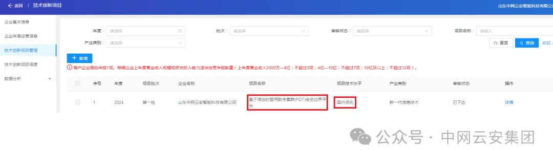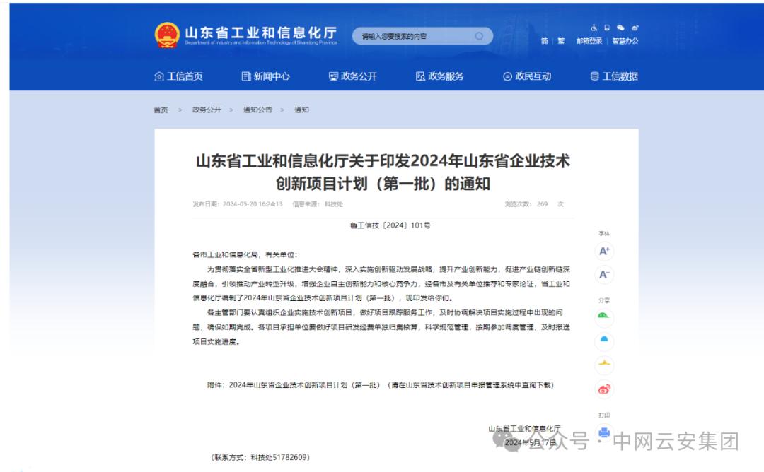 近日山东省工业和信息化厅发布了2024年山东省企业技术创新项目计划(第一批)入选项目名单。中网云安“基于信创的警用数字集群(PDT)安全边界平台”入选2024年山东省企业技术创新项目计划(第一批)。