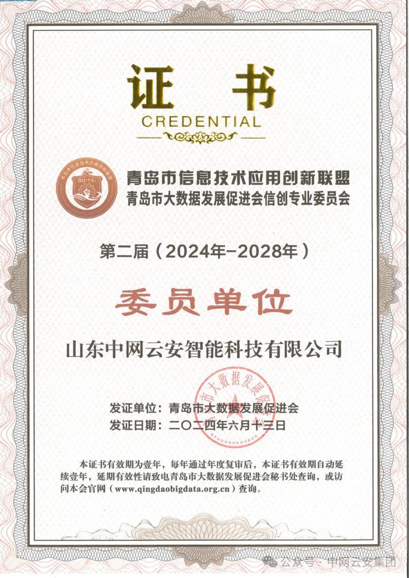 在会前举行的青岛市信息技术应用创新联盟换届大会暨第二届委员会第一次会议上,选举产生了市信创联盟、数促会信创专委会第二届委员会领导班子成员。中网云安入选青岛市信息技术应用创新联盟(青岛市大数据发展促进会信创专委会)第二届委员单位。