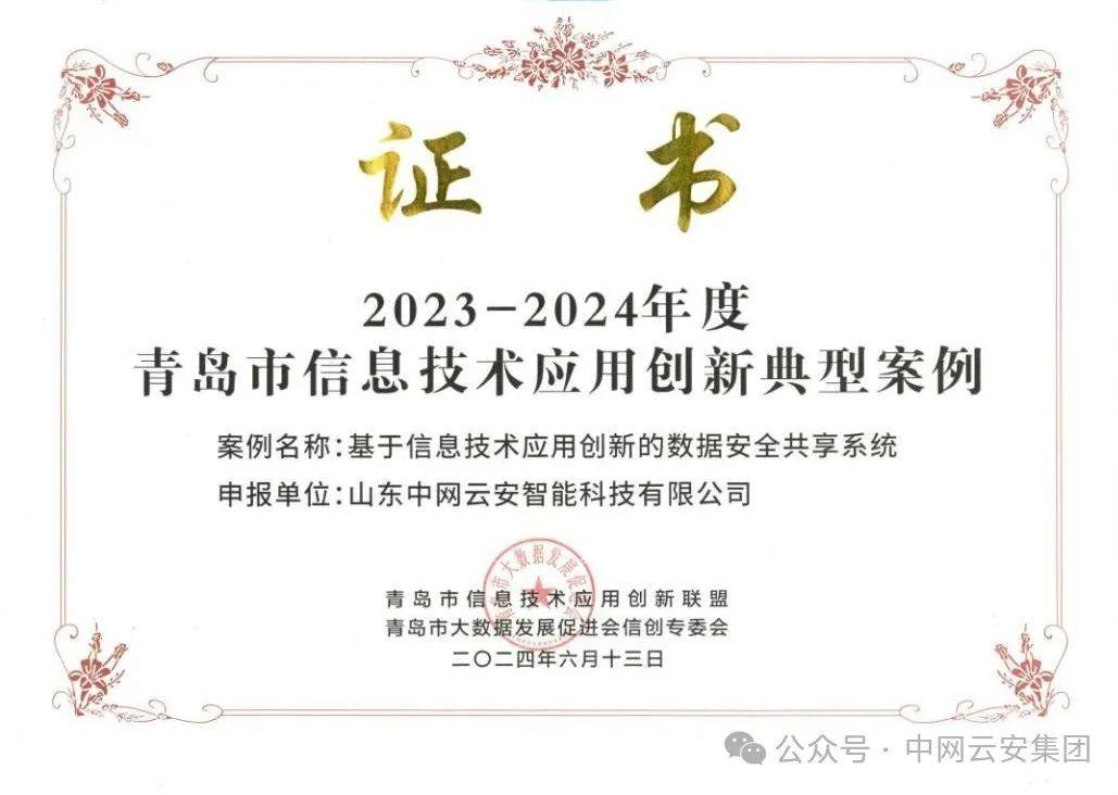 为贯彻国家大数据战略和创新驱动发展战略,落实山东省大数据产业生态建设“焕新工程”工作要求,推动国产化自主创新产品应用推广,促进信息技术应用创新实践典型经验交流,信创联盟组织开展了2023-2024年度青岛市信息技术应用创新典型案例征集工作。经申报推荐、材料复审,共有7个信创典型案例入围,并在会上进行了证书颁发仪式。中网云安《基于信息技术应用创新的数据安全共享系统》荣获2023-2024年青岛市信息技术应用创新典型案例。