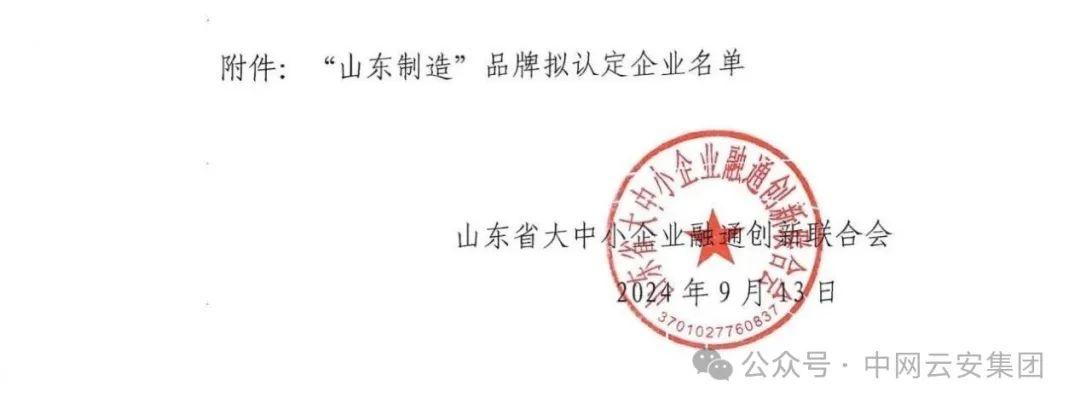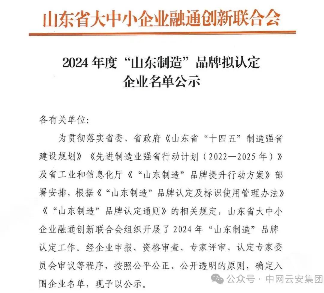 【喜报】中网云安入围2024年“山东制造”品牌企业名单!