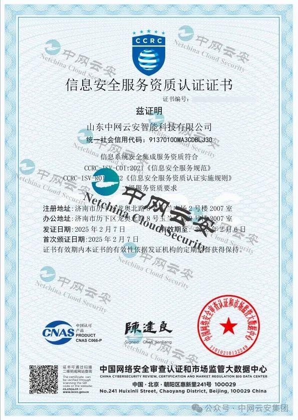 根据中央编办批复,中国网络安全审查技术与认证中心更名为中国网络安全审查认证和市场监管大数据中心,整建制划入市场监管总局信息中心,同时划入竞争政策与大数据中心部分职能。网数中心是经中央批准设立、国家市场监督管理总局直属的权威认证机构,其信息安全服务资质认证以标准严苛、审核全面著称,是衡量企业网络安全技术实力和服务能力的“金标准”。企业需拥有网络安全系统集成项目的需求分析、方案设计、实施交付及风险管理等全流程能力,同时,要求企业具备成熟的技术体系、丰富的项目经验和规范的服务流程,是行业内含金量极高的资质认证之一。