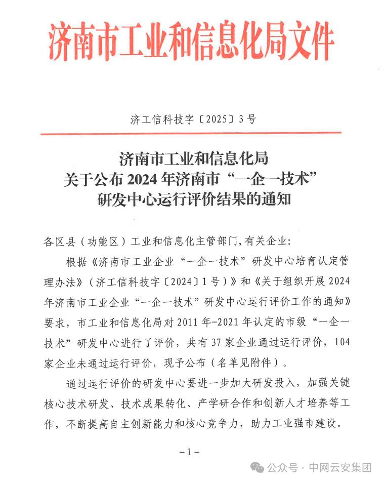 济南市“一企一技术”研发中心旨在推动企业聚焦细分领域技术突破,加速成果转化,不断提高自主创新能力和核心竞争力,助力工业强市建设。中网云安自创立以来,始终以“技术驱动安全”为使命,聚焦信息安全设备研发、软件开发以及数字化解决方案,业务覆盖金融、能源、医疗等关键领域,此次入选也是对中网云安多年来持续深耕的肯定和认可。