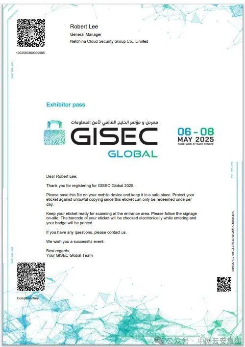 2025年,我们韬光养晦,蓄势待发。5月6 - 8日,于迪拜世界贸易中心,中网云安诚挚期待与各界同仁共襄盛会,携手擘画网络安全新蓝图,共筑中东地区网络安全新屏障!
