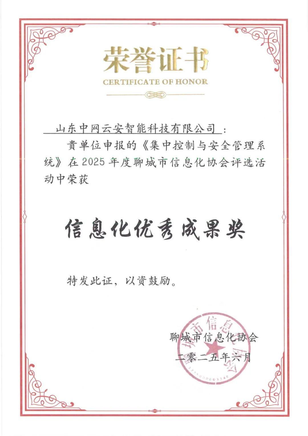 在“聊城市信息化行业2024~2025年度优秀信息化单位”评选中,中网云安凭借在技术创新、行业应用及信息化建设中的突出贡献成功入选。作为深耕信息化领域的标杆企业,公司多年来持续在网络安全、系统集成等领域投入研发,以技术赋能政务、医疗、工业等多个行业场景,中网云安专业化的服务能力以及强大的行业影响力获得评审团高度认可,荣获“优秀信息化单位”实至名归!