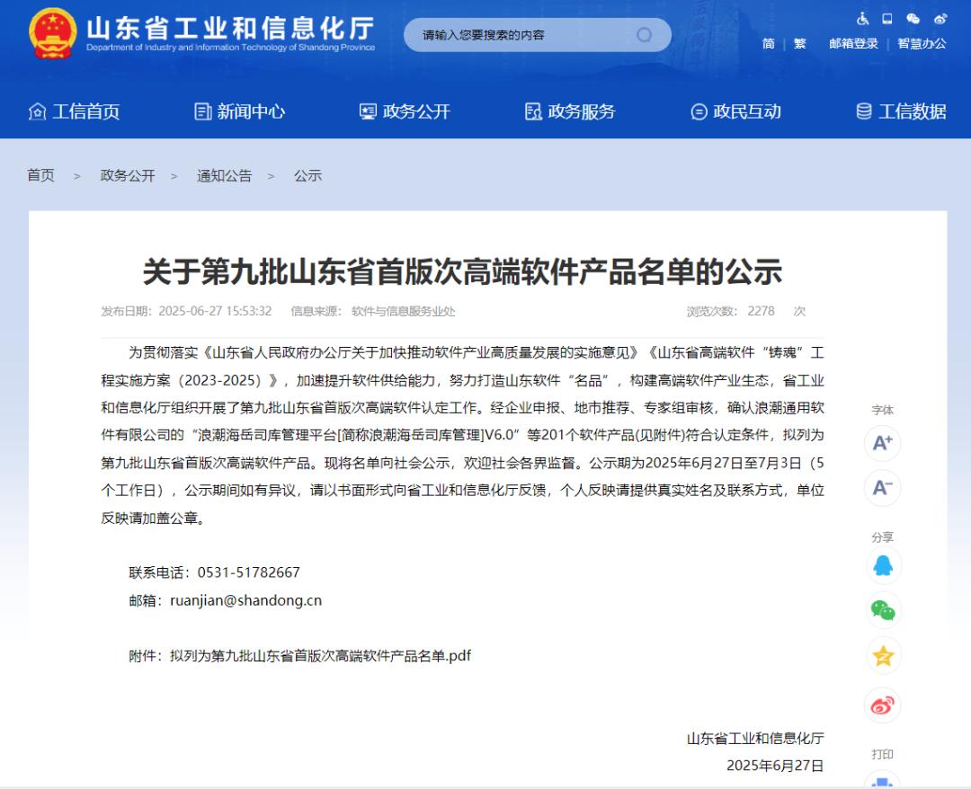 近日,山东省工业和信息化厅正式公布了 “第九批山东省首版次高端软件产品名单”。经过严格评审与层层筛选,香港正牌资料(以下简称中网云安)自主研发的“数据安全防御系统” 凭借其突出的技术创新性、卓越的安全防护能力成功入选!