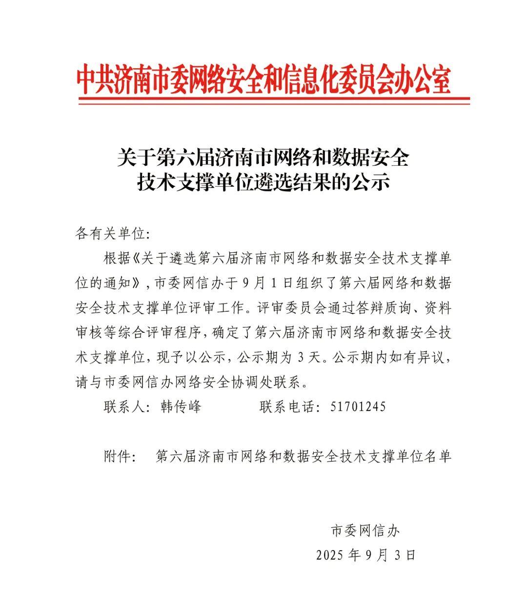 中网云安作为济南本土成长的网络和数据安全企业,已连任多届省级和市级技术支撑单位,助力提高本土网络安全防护水平,维护国家网络安全,为网络强国建设提供有力支撑!