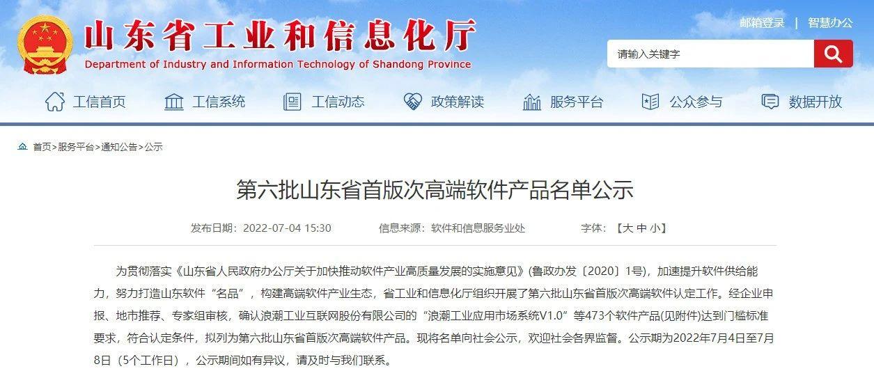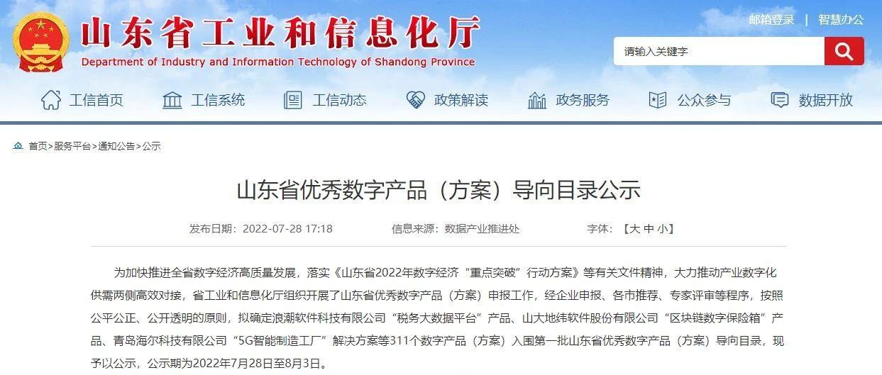 2022年7月28日,山东省工业和信息化厅公示了第一批山东省优秀数字产品(方案)导向目录,由中网云安智能科技有限公司主导研发的“基于...