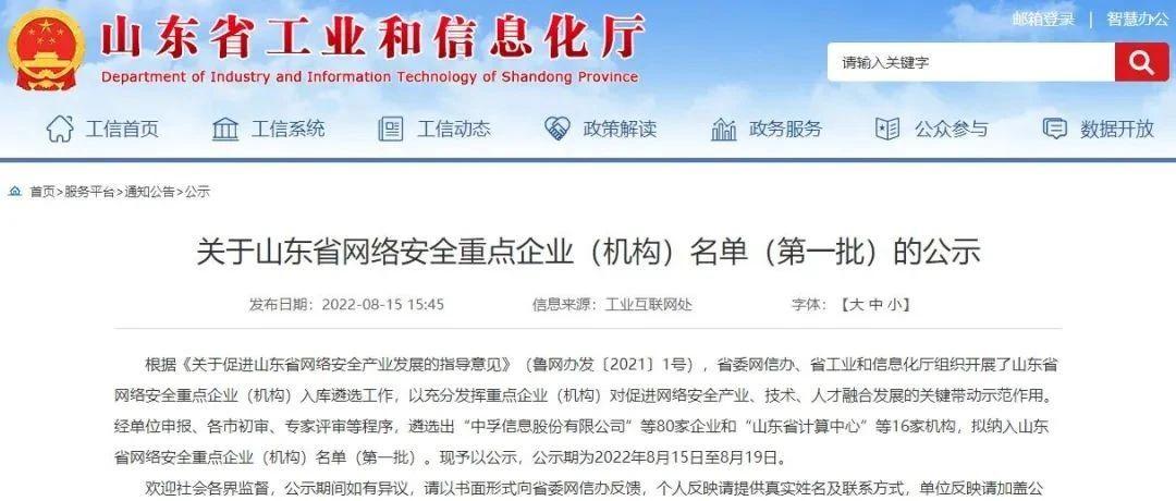 根据《关于促进山东省网络安全产业发展的指导意见》(鲁网办发〔2021〕1号),省委网信办、省工业和信息化厅组织开展了山东省网络安全...