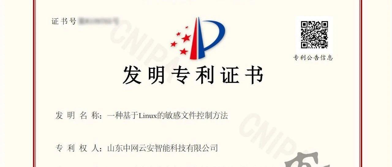 山东中网自主研发的“一种基于Linux的敏感文件控制方法”成功获得国家发明专利授权。这一成果标志着公司在数据安全技术领域的创新突破...
