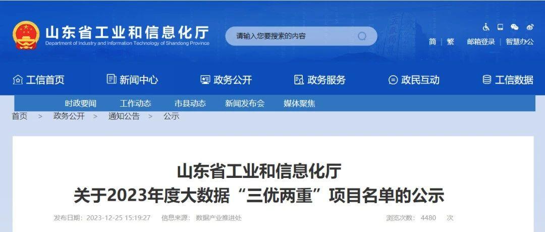 近日,山东省工业和信息化厅公布了2023年度山东省大数据“三优两重”项目名单。...