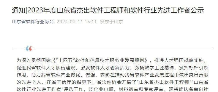 近日在山东省工信厅的指导下,由山东省软件协会开展的“山东省杰出软件工程师”“山东省软件行业先进工作者”评选工作...
