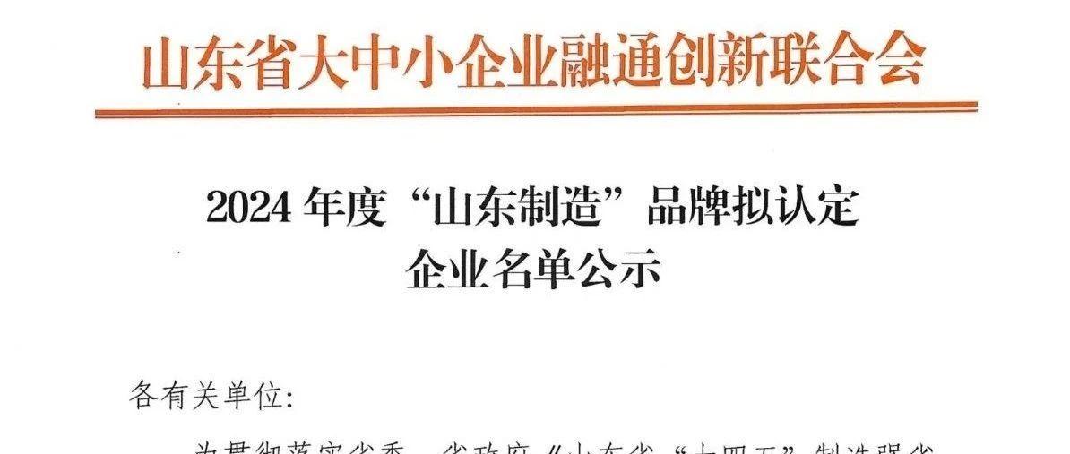 山东省大中小企业融通创新联合会组织开展了2024年“山东制造”品牌认定工作。经企业申报、资格审查、专家评审、认定专家委员会审议等...
