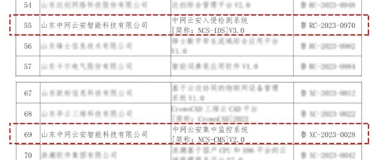 经企业申报、材料初审和专家评审,中网云安两款产品“中网云安入侵检测系统简称:NCS-IDS]V3.0”、“中网云安集中监控系统简称:NCS-CMS]V2....