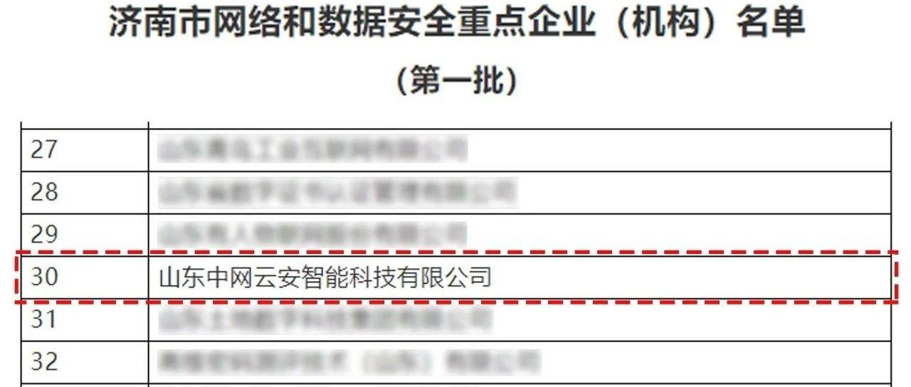 经各区县推荐申报、专家评审等程序,中网云安凭借优秀的技术研发能力,成功入选济南市网络和数据安全重点企业(机构)名单(第一批...